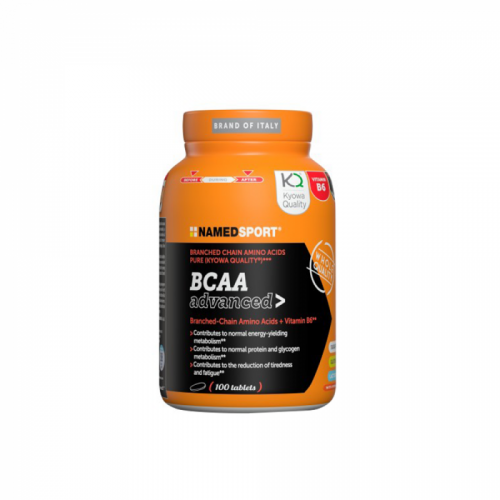 „BCAA Advanced“ yra maisto papildas iš šakotosios grandinės aminorūgščių ir vitamino B6. RAUMENS VYSTYMAS – ATSPARUMAS – ATSISTATYMAS Šakotosios grandinės aminorūgštys tinka kaip maisto papildas sportininkams. Vitaminas B6 padeda sumažinti nuovargį ir raumenų nuovargį. „BCAA Advanced“ sudėtyje yra vitamino B6, kuris dalyvauja gliukidų, lipidų ir baltymų energijos apykaitoje, taip pat hemoglobino ir raudonųjų kraujo kūnelių sintezėje. Skatina raumenų baltymų sintezę. Suteikia energijos intensyvių užsiėmimų metu. Padeda išvengti raumenų pažeidimo fizinio krūvio metu. Optimizuoja organizmo atsistatymo laiką. AMINORŪGŠTYS – kam jos yra skirtos? Jų vartojimas yra būtinas mūsų kūno funkcionavimui. Jos palaiko raumenis, odą, plaukus ir kraują bei padeda apsaugoti ir reguliuoti fiziologines funkcijas, taip pat hormonus, fermentus ir antikūnus. Jų pagrindinė funkcija yra įsikišti į baltymų sintezę, reikalingą užtikrinti kūno ląstelių atsinaujinimo procesams, taip pat suteikiant energijos judėjimui. Norint tinkamai veikti ir palaikyti normalias raumenų funkcijas, mūsų organizmui reikia pakankamo baltymų kiekio, kad būtų užtikrintas visų būtinų aminorūgščių tiekimas skirtingais kiekiais, atsižvelgiant į amžių, fizinį bei protinį krūvį. Kodėl ir kada vartojama? Maiste esantys baltymai ne visada turi optimalią aminorūgščių pusiausvyrą. Todėl vien tik iš reguliarios mitybos gali būti sunku gauti reikiamus kiekius savijautai svarbių medžiagų, ypač tiems, kurie sportuoja, pagyvenusiems žmonėms ir žmonėms, kurie laikosi mažai kalorijų turinčių dietų. Taigi, norint sustiprinti dienos racioną ir skatinti efektyvų raumenų vystymąsi, reikalingas amino rūgščių vartojimas siekiant užtikrinti reikalingą subalansuotą pusiausvyrą. Italijos gamintojo „Namedsport S.r.l.“ produktai gaminami naudojant tik premium kokybės standartais laikomas žaliavas: Ajinomoto, Kyowa, Creapure, Carnipure, IFOS, Carbelac, Izolac ir kt. Profesionalių elitinių atletų įvertinta kokybė ir pasitikėjimas. Grynasis kiekis: 100 tablečių = 115 g.