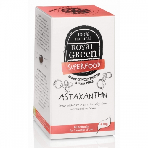 Kruopščiai auginamas itin švarioje aplinkoje Havajuose. Royal Green Astaksantino sudėtyje yra keturi skirtingi karotenoidai, gaunami iš 100% Haematococcus pluvialis dumblių gauto dervingojo aliejaus. Svarbiausias iš jų yra astaksantinas, kurį pateikiame ypač koncentruotu pavidalu. Royal Green Astaksantino sudėtyje taip pat yra natūralių karotenoidų kantaksantino, beta-karoteno ir liuteino. Papildytas vitaminu E, kuris padeda apsaugoti ląsteles nuo oksidacinės pažaidos.