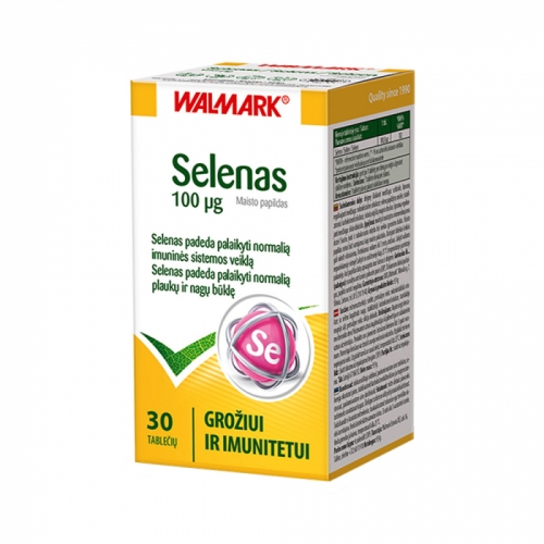 Selenas grožiui ir imunitetui. Selenas padeda: palaikyti normalią imuninės sistemos veiklą palaikyti normalią plaukų ir nagų būklę apsaugoti ląsteles nuo oksidacinės pažaidos palaikyti normalią spermatogenezę palaikyti normalią skydliaukės veiklą Walmark Selenas 100 μg Didelė dozė seleno vienoje tabletėje